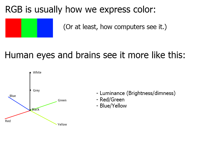 - Transforms made between several color spaces: RGB, LMS, CIE xyY, CIE L*a*b